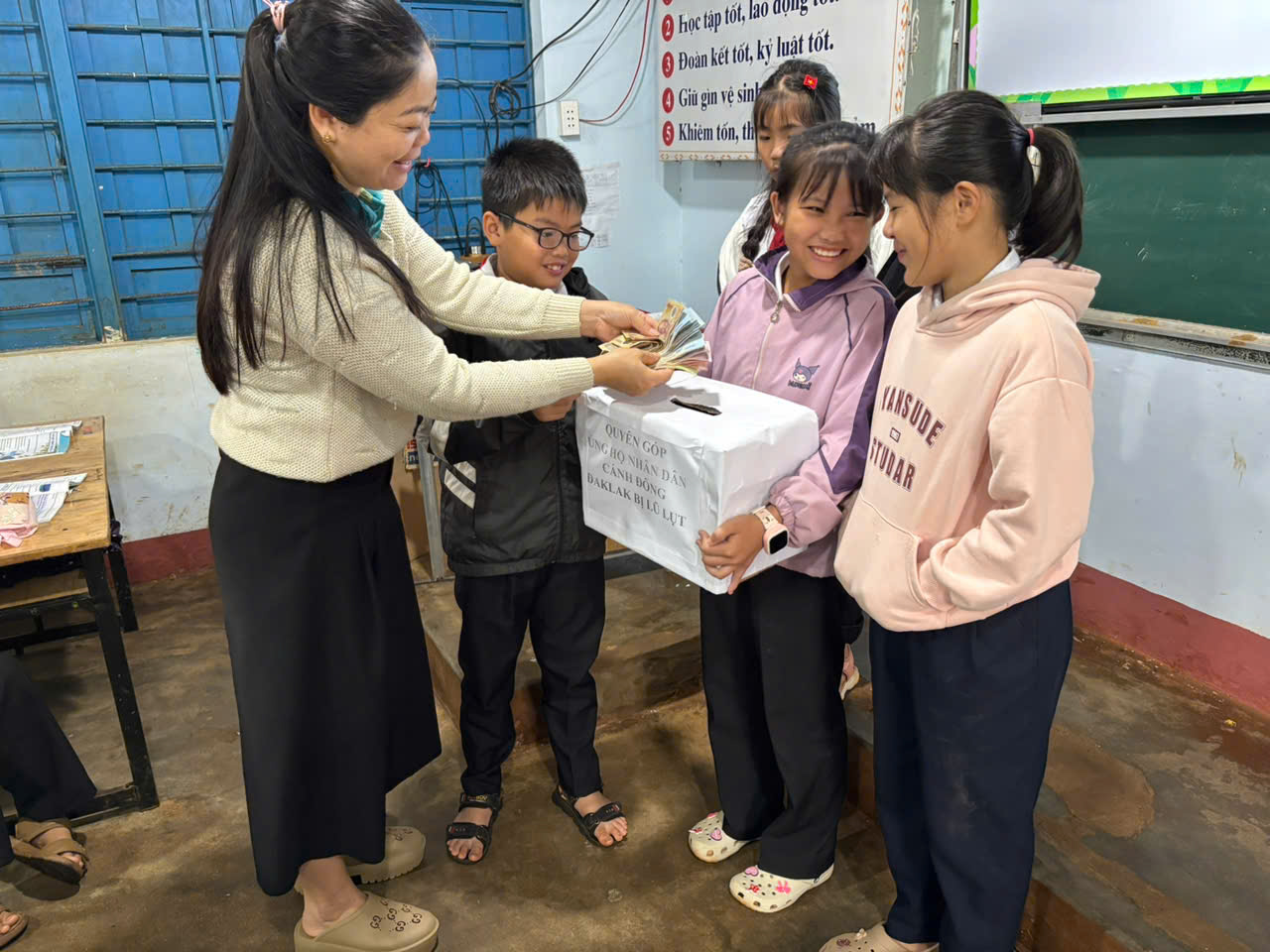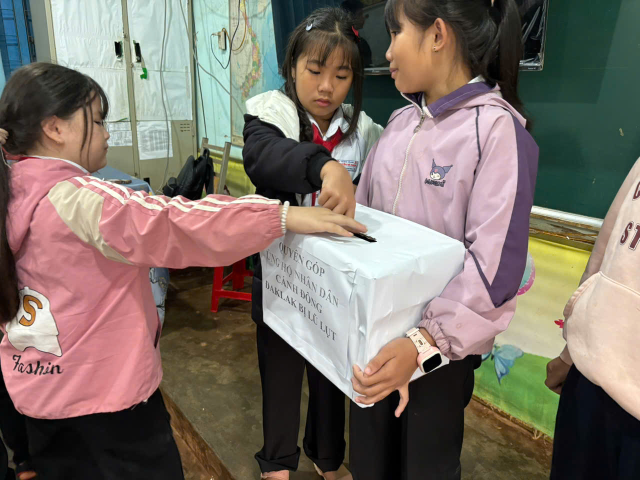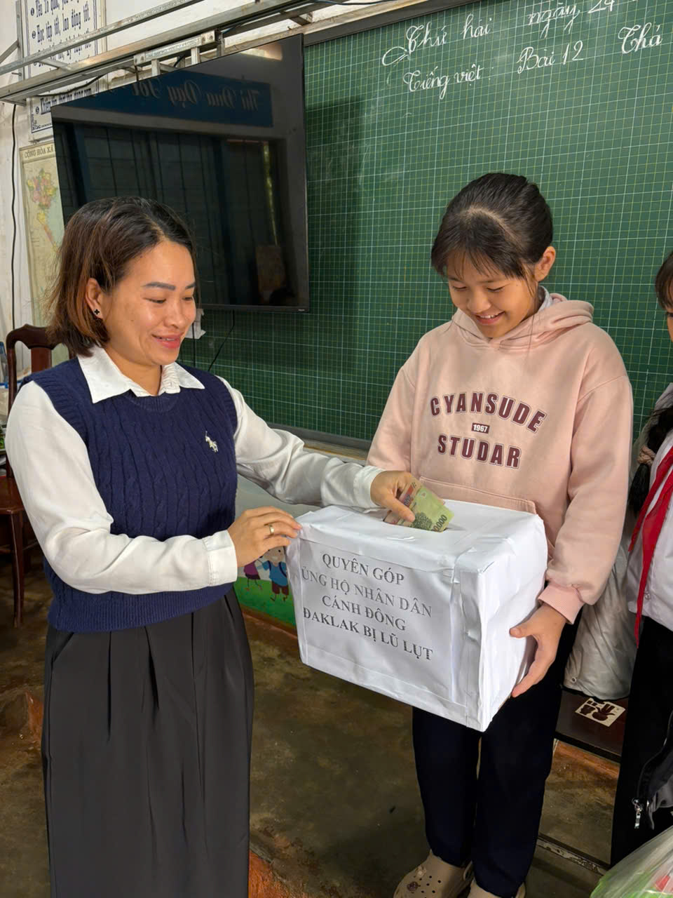 Nhà trường xin trân trọng thông báo tổng số tiền quyên góp nhận được là:11.629.000 VNĐ (Mười một triệu sáu trăm hai mươi chín nghìn đồng) để hỗ trợ đồng bào khó khăn tại khu vực Đông Đắk Lắk (Phú Yên cũ).